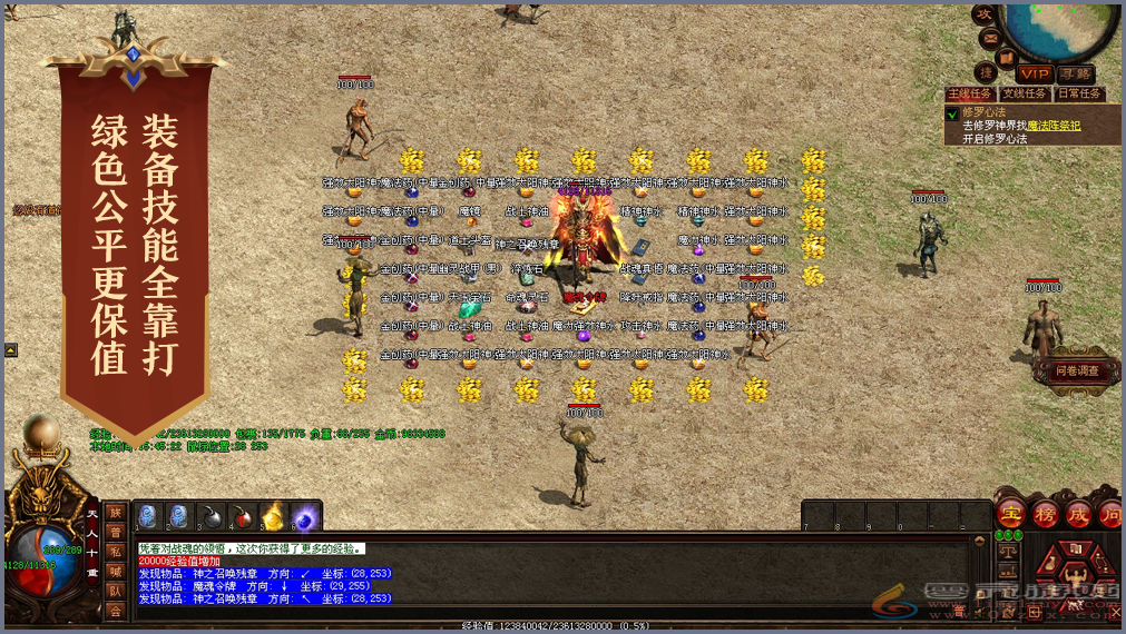 《传奇世界》是盛趣游戏旗下传世工作室自主研发的大型MMORPG。自2003年7问世至今,累计注册用户过亿。《传奇世界》以人、修罗和魔族的三界纷争为世界观,充满浓郁的东方玄幻神韵。战法道妖四职业完美平衡,传承打宝PK、杀人红名、千人攻沙等经典特色。从天空到海底,广阔的修真之旅,邀您畅爽体验传世打宝PK之旅。